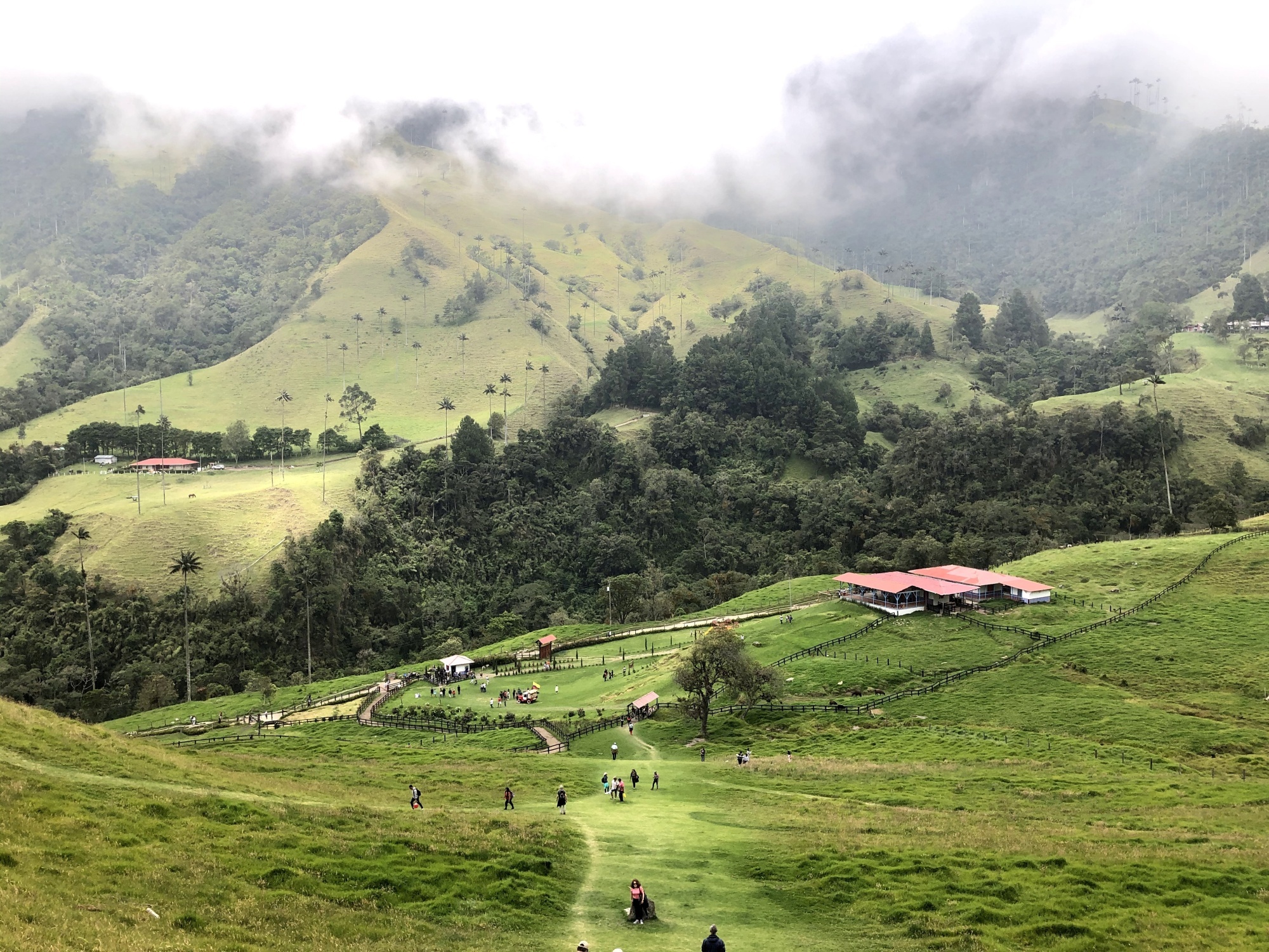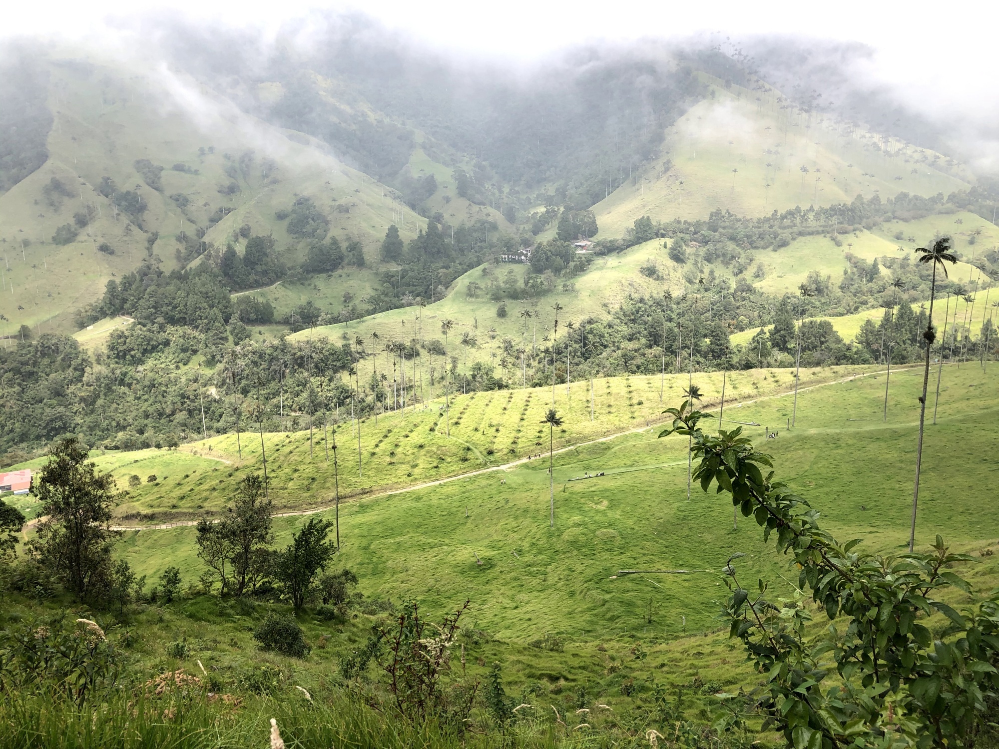 Doorgereden naar Valle Cocora. Hier staan veel wax palmen. Deze waxpalmen zijn de hoogste van de wereld en kunnen tot 60 meter hoog worden.