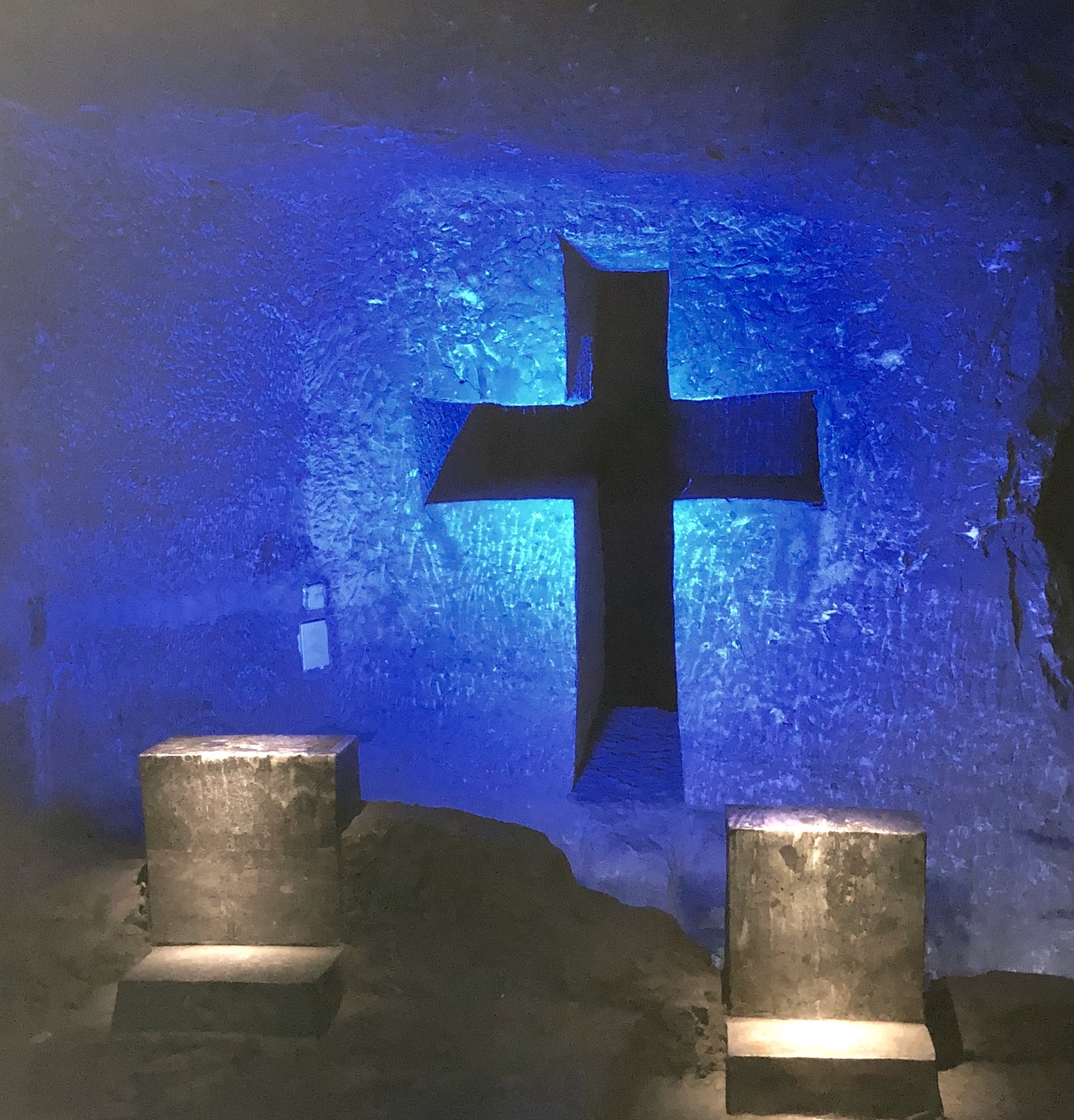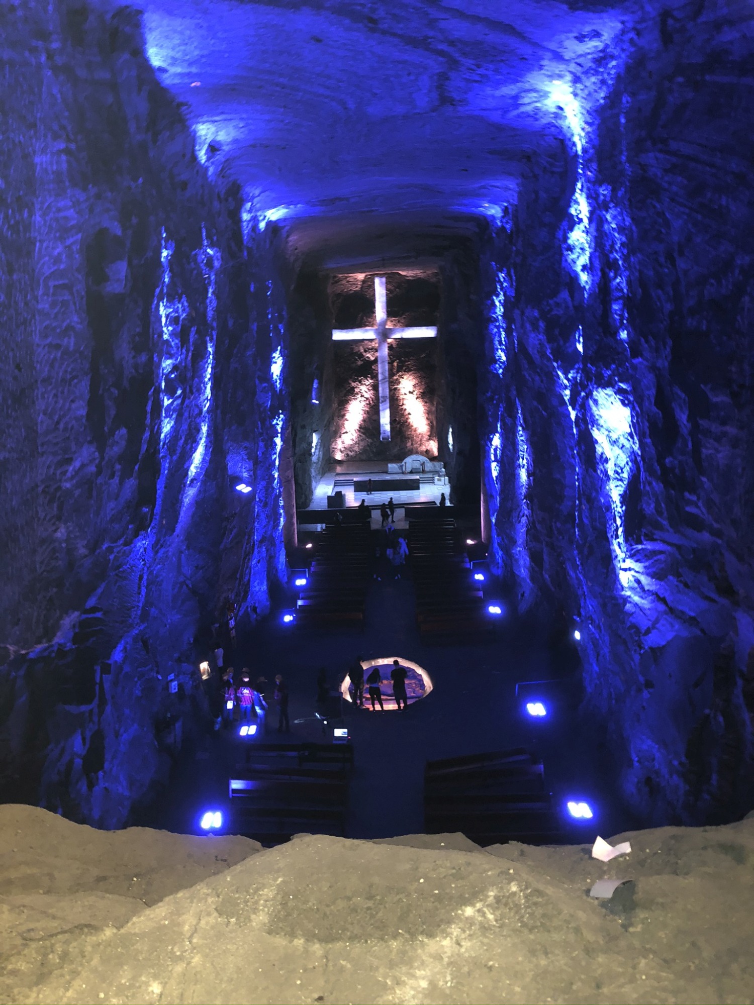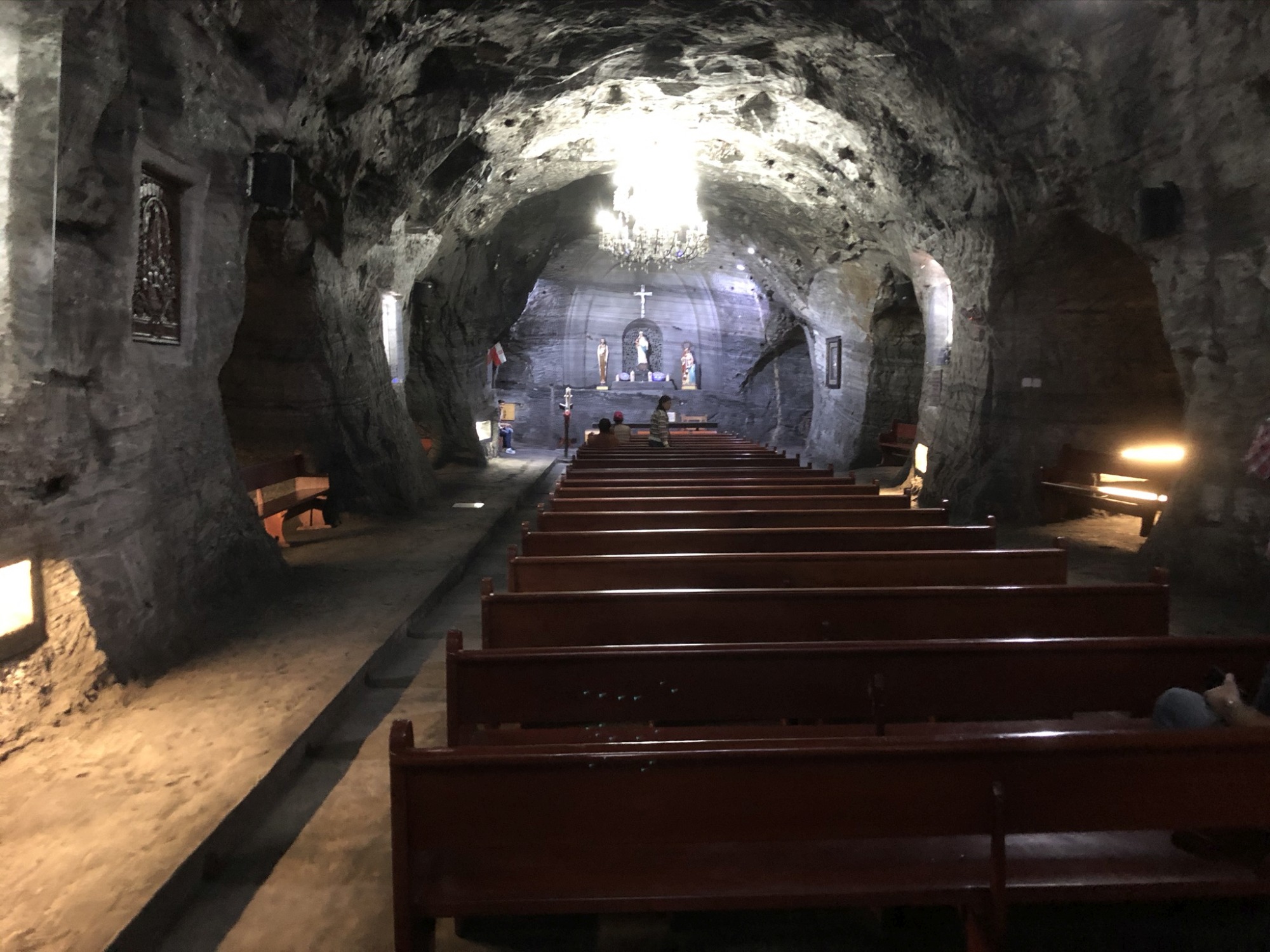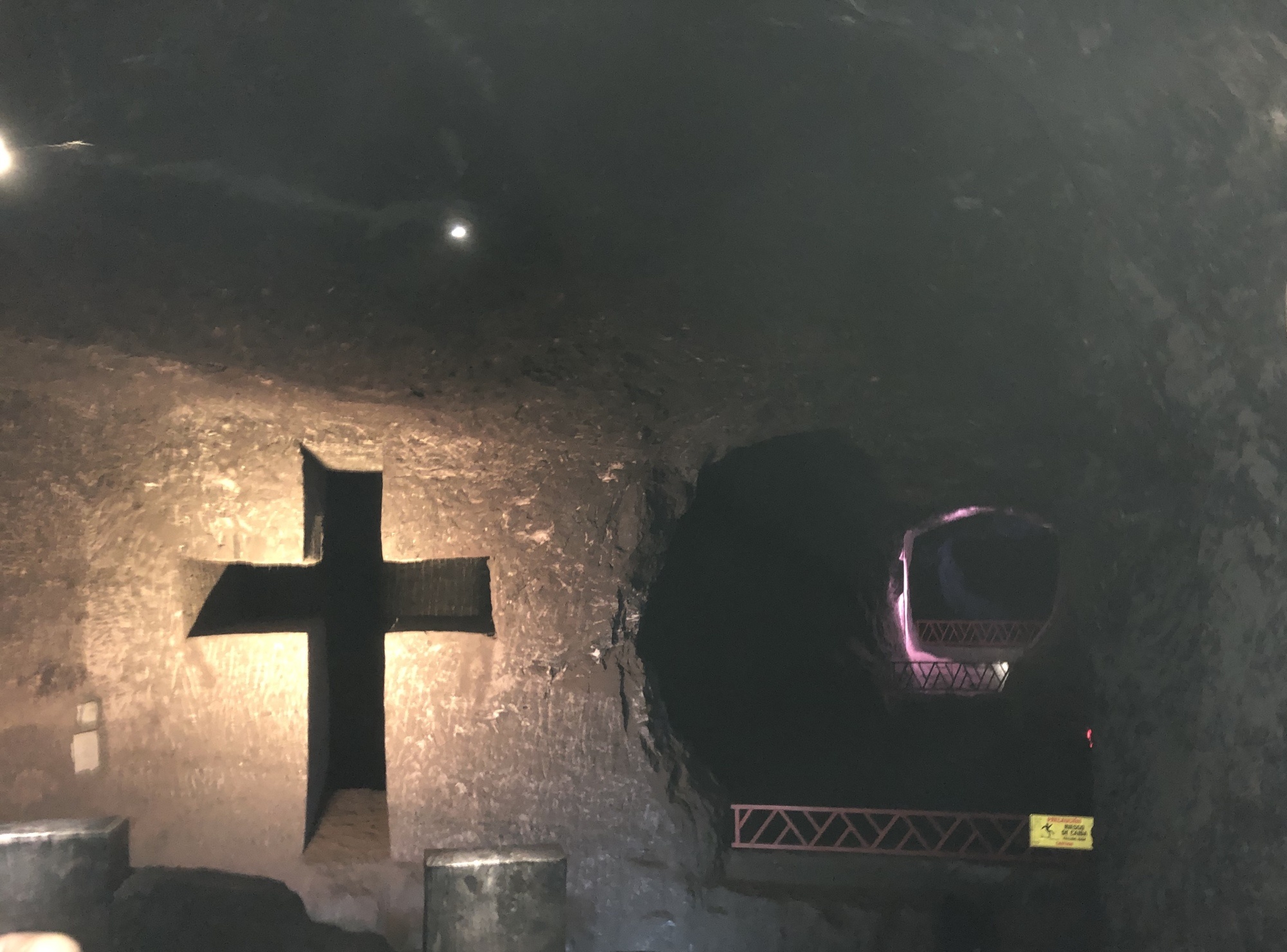 Daarna de excursie naar ‘Catedral de Sal: de ondergrondse zoutkathedraal (400 meter lang en 180 meter diep). Nadat het zout gewonnen was, heeft men de mijn in 3 jaar tijd omgebouwd tot deze kathedraal. Er zijn er 3 op de wereld: 1 in Colombia en 2 in Polen.